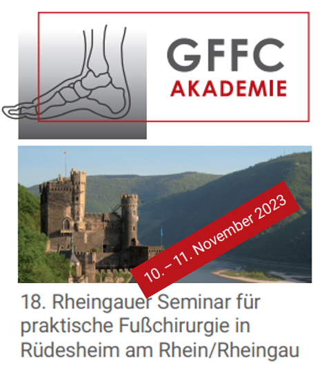 Am 10. – 11. November nahm Dr. A. Schroth am 18. Rheingau Seminar für praktische Fußchirurgie der GFFC Gesellschaft für Fuß- und Sprunggelenkchirurgie teil. Als Referent von drei Vorträgen sowie als Instruktor konnte er den Kurs aktiv mitgestalten.