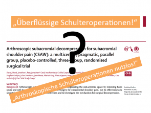 Gemeinsame Stellungnahme von DGOU, den Sektionen AGA, DVSE und GOTS, dem BVOU, BDC und BVASK zur im „Lancet“ veröffentlichten CSAW-Studie („Can Shoulder Arthroscopy Work?“) zum Nutzen einer arthroskopischen Dekompression bei Patienten mit >3 Monaten bestehenden subakromialen Schulterschmerzen.