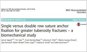 Aktuell wurde von PD Dr. Stefan Buchmann und Kollegen eine biomechanische Studie zu verschiedenen minimal-invasiven Operationsverfahren bei knöchernen Ausrissverletzungen der Schultersehnen veröffentlicht. Hierbei konnte gezeigt werden, dass bei weichem Knochen auch eine Ankerfixation nur über 2 Knochenanker eine suffiziente Therapiealternative darstellt. Diese Erkenntnisse eröffnen weitere Therapieoptionen in der minimal-invasiven arthroskopischen Versorgung dieser Verletzungen.