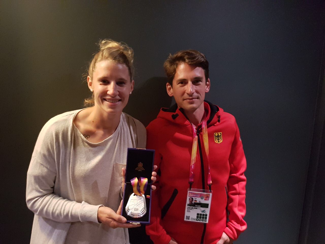 20. August 2017 von ofz-officeBei der diesjährigen Leichtathletik WM vom 04.-13.08.2017 war Prof. Dr. Sven Reuter einer der 4 betreuenden Mediziner vor Ort. Insbesondere die 3 Medaillen der Mehrkämpfer (1 x Silber Siebenkampf Carolin Schäfer, 1 x Silber und 1 x Bronze Rico Freimuth und Kai Kazmirek) die er auch über das Jahr betreut hat, haben für überschwängliche Freude gesorgt. Glücklicherweise ist Prof. Sven Reuter verschont vom Noro Virus gesund zurück in unsere Praxis gekommen.