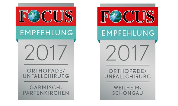 11. August 2017 von ofz-officeDr. Bachfischer und Dr. Vogt haben das Empfehlungssiegel „Orthopäde/Unfallchirurg“ für Weilheim/Schongau und Garmisch-Partenkirchen erhalten. FOCUS GESUNDHEIT empfiehlt Ärzte, Kliniken und Rehakliniken, die auf ihrem Spezialgebiet führend sind. Das Siegel schließt neben der fachlichen Qualifikation auch Empfehlungen von fachfremden sowie Kollegen aus dem eigenen Fachgebiet ein.